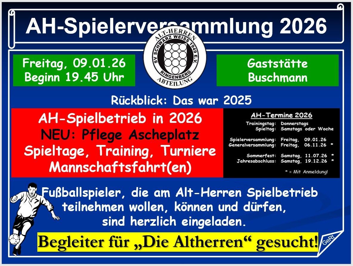 Freitag, 09.01.26, 19:45 Uhr Spielerversammlung